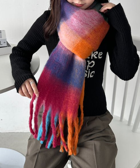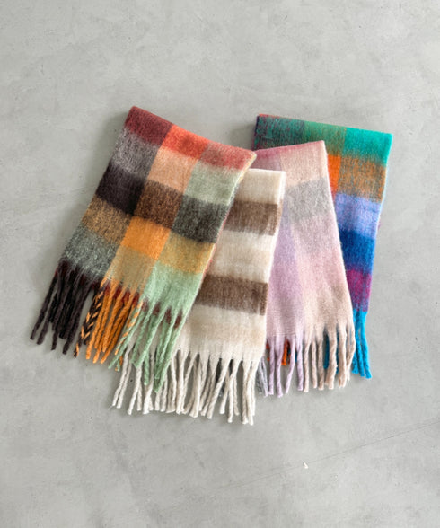 \25AW新色追加♡全10色展開/ニュアンスカラーのマルチチェック柄が目を惹く♡ボリュームたっぷりのあったかマフラー!■Pointボリューム感たっぷりな太めフリンジマフラー!優しい色合いのチェック柄がコーデにアクセントを加えてくれます◎ふんわり柔らかな質感は思わず触りたくなる♡ビッグサイズなのでマフラーとしてだけでなく膝掛けとしても使えるのでこれからの寒い時期、学校にお仕事中にと大活躍してくれます♪暗くなりがちな寒い時期のコーディネートにプラスするだけで一気に華やかに◎ブラックやホワイト、グレーなどの単色カラーに合わせるとコーデにメリハリがついてオシャ見えします♪友達や彼とお揃いでつけるのも可愛い♡ 【CLEA/クレア】 毎日のシンプルスタイルを、さりげなくオシャレに。 casual fashion every day to you. . . シンプルだけど、どこか女性らしい。 さりげないのに、なんだかオシャレ。 上品さと抜け感のある、 大人カジュアルスタイルをご提案します。 ※ご覧のモニター・撮影環境により実際の商品と多少色味が異なって見える場合がございます。 予めご了承をお願いいたします。 【お買い物をよりお楽しみいただく為に!】 ▼商品のお気に入り登録ハートをクリック! 完売カラーの再入荷や、ラスト1点の通知、セールの際の通知を受ける事ができます。 いち早くブランドのお得な情報を受け取ることができます。