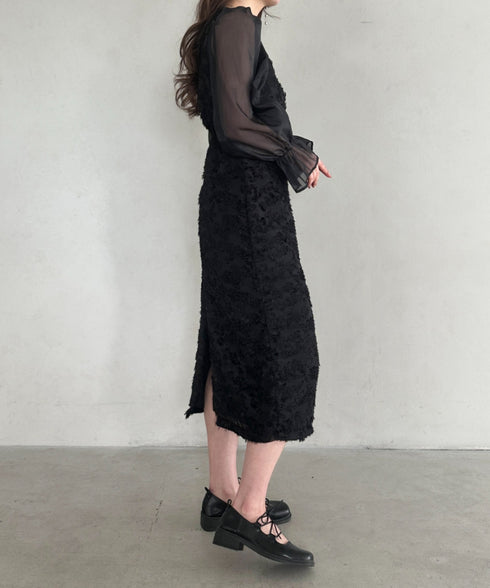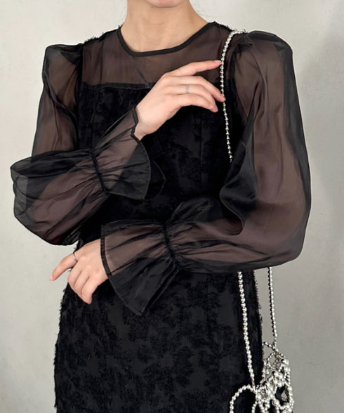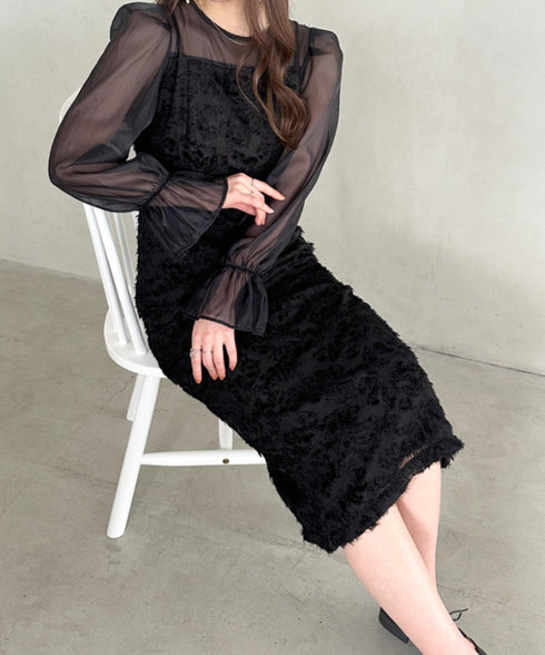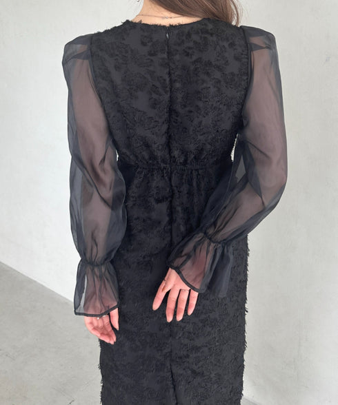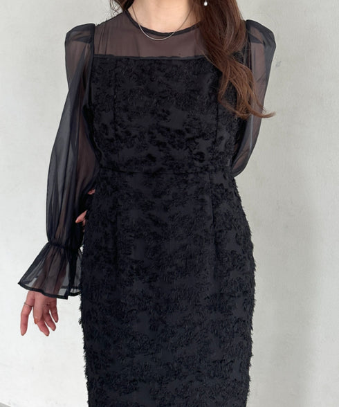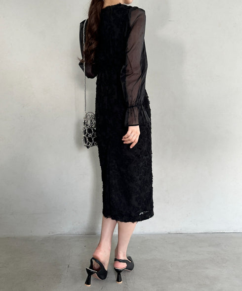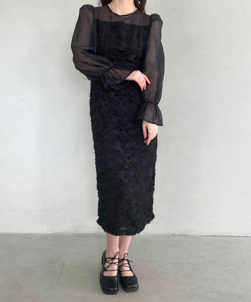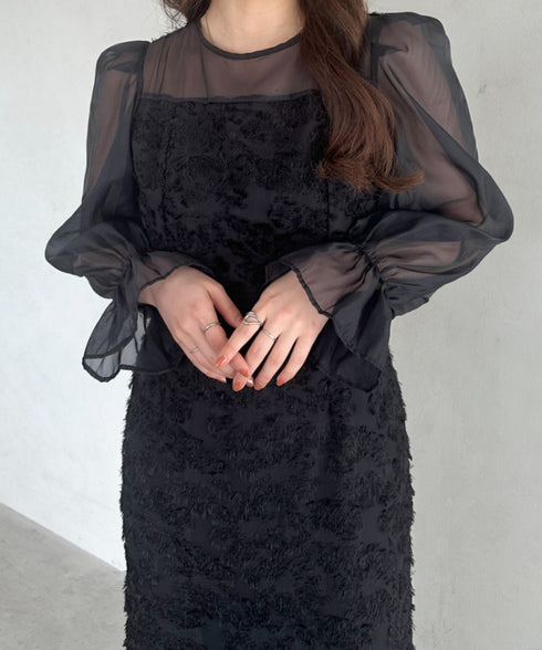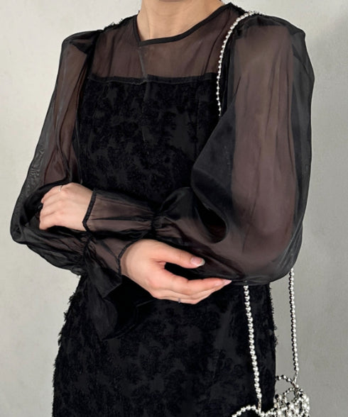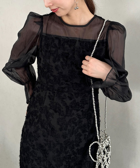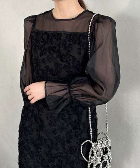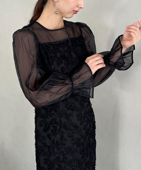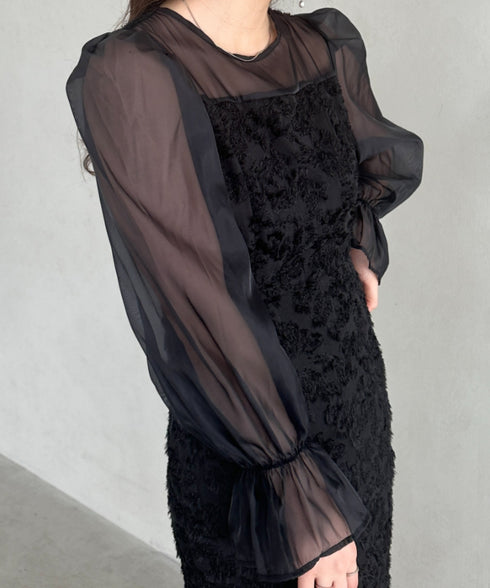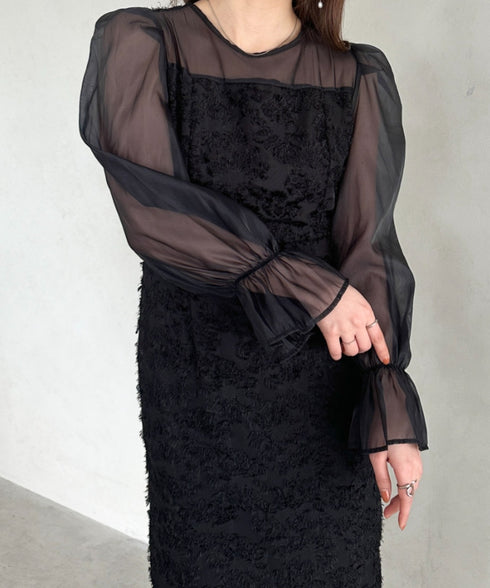 ラウンドネックシアーロングワンピース ドレス | MD2251080 | ブラック