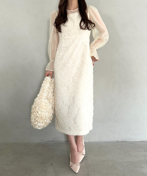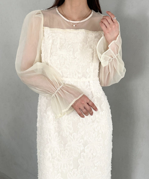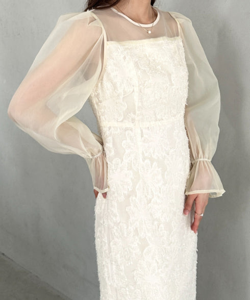 ラウンドネックシアーロングワンピース ドレス | MD2251080 | アイボリー