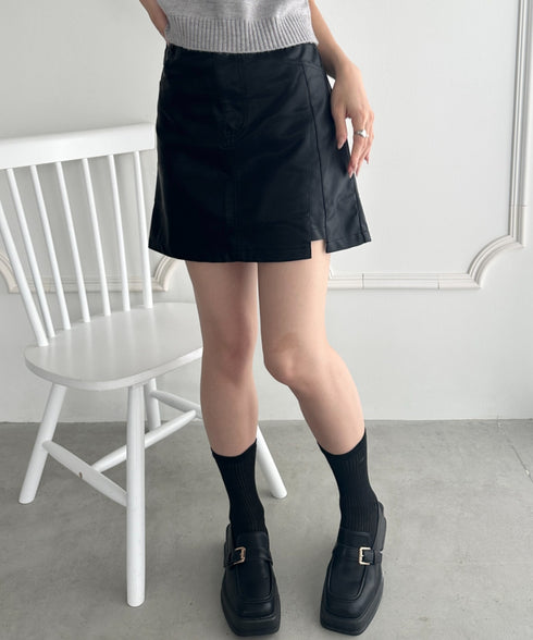 インパン付き PU台形ミニスカート | WR2253006 | ブラック