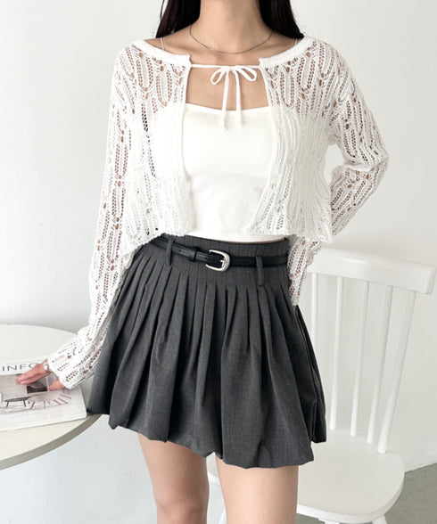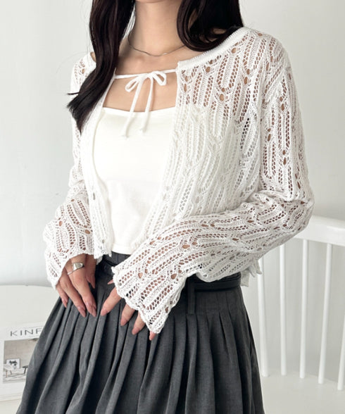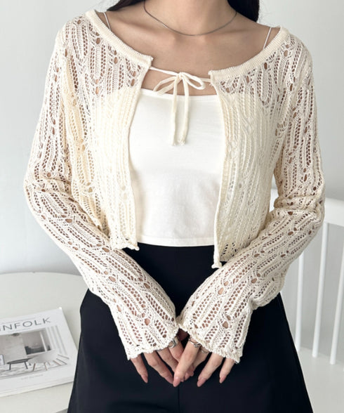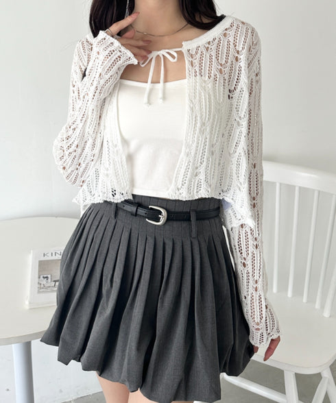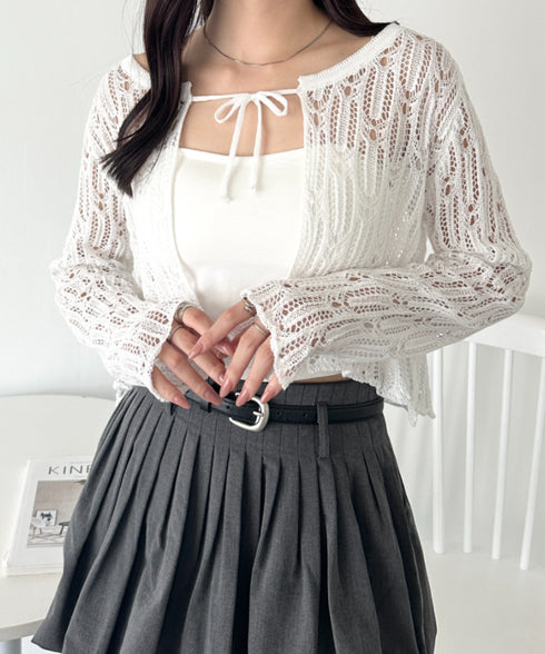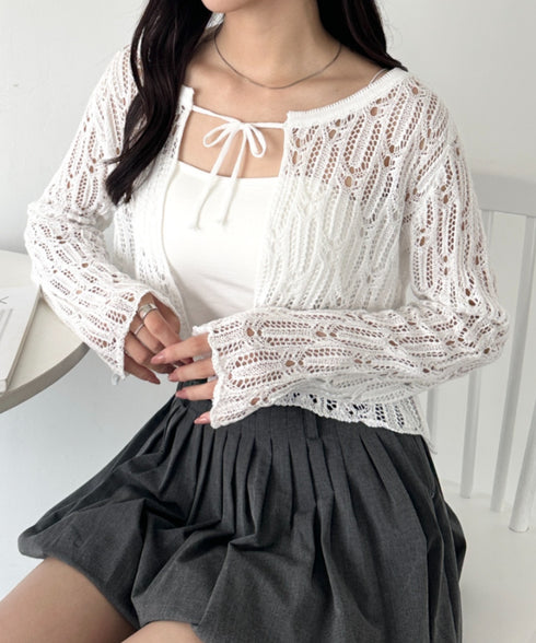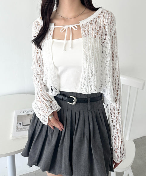 フロントリボンかぎ編みショートボレロカーディガン | WR2253016 | ホワイト