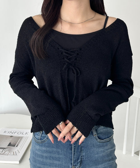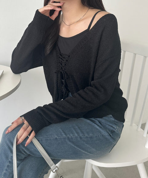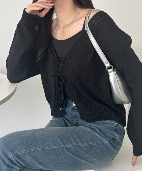 レースアップニットボレロカーディガン | WR2253024 | ブラック