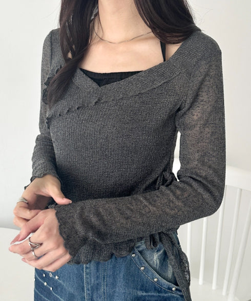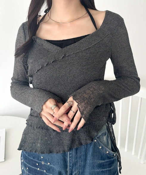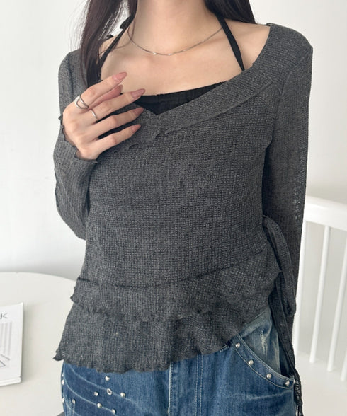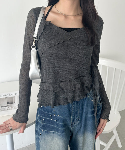 ホルターネックフリルレイヤードトップス | WR2253025 | グレー