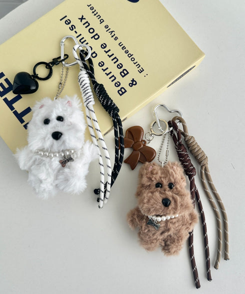 ハート カラビナ付き ファー ドッグ ぬいキーホルダー ぬいぐるみチャーム バッグチャームマルチウェイ チャーム 犬 | WR6255027 | ホワイト